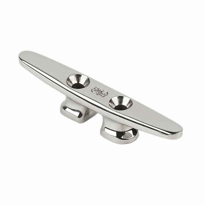 3″ SS Open Base Cleat. Includes urethane washers for isolation when attaching to spars. Polished smooth finish reduces chafe on lines. Maximum line size 1/4″ (6mm), Length 3″ (76mm), Height .6″ (15mm), Fastener size #8 FH, Fastener center/center .78″ (20mm), Weight 1.3 oz (.04kg).